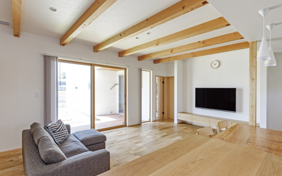 最初に当社に訪れてから約3年。こだわり抜いたMさんが建てた家は、自然素材が活かされたシンプルで洗練されたデザインの平屋建て。同社が推奨する全館空調システム【MIRAI(ミライ)】を採用したMさんは以前の家でとても寒い経験をしていたこと、【MIRAI】を搭載した完成宅や当社の工事中物件を見学し、構造なのかを確認し納得できたことが採用の決め手になったそうだ。引き渡しは4月だったため、【MIRAI】の実力を体感するのはこれからのこと。心地よさや光熱費にきっと驚くだろう。